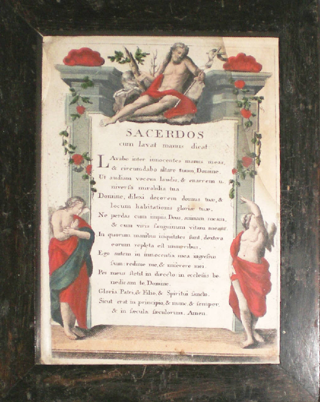 - NOTIZIE STORICO CRITICHE Vi è stampata la preghiera che il sacedote recita quando lava le mani durante la messa.