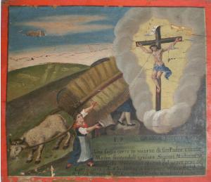 figlia che invoca il SS. Crocifisso e salva i genitori schiacciati da un carro