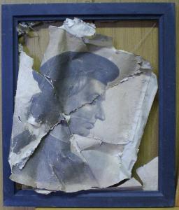 Litografia su carta di formato retangolare, incollata su un secondo supporto cartaceo e spago. Inserita in cornice di legno sagomata e dipinta di nero.