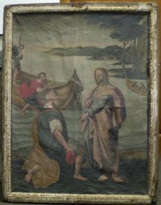 Dipinto rettangolare, su tela, incorniciato con cornice intagliata e dorata ( ma doratura quasi completamente persa).