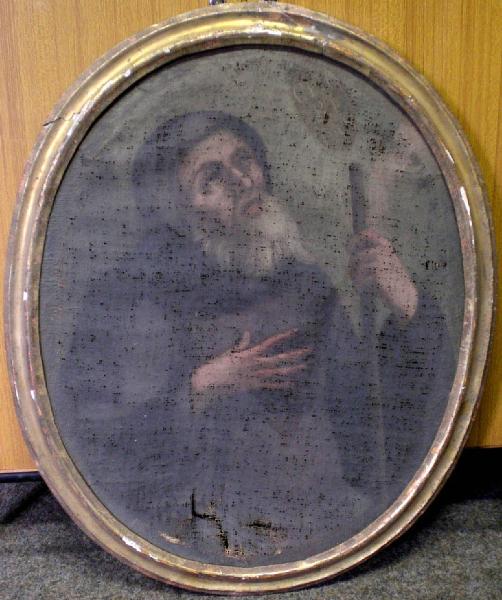 - NOTIZIE STORICO CRITICHE Cfr. invv. 2094-2096-2097. L'immagine è quasi speculare rispetto al dipinto con inv. 2095. Cambiano il lato verso cui è rivolto il santo e la posizione del bastone.