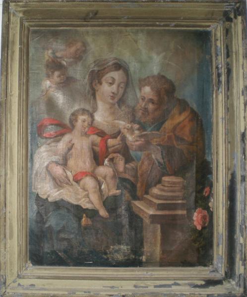 Dipinto rettangolare, su carta, incorniciato con cornice intagliata e dipinta.