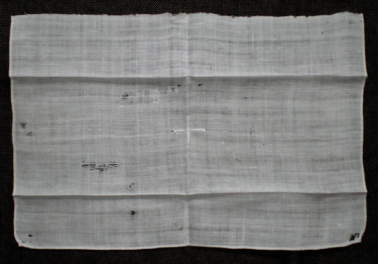 Punificatoio in lino bianco, con croce a bracci uguali ricamata al centro. Orlo presente solo su tre lati.