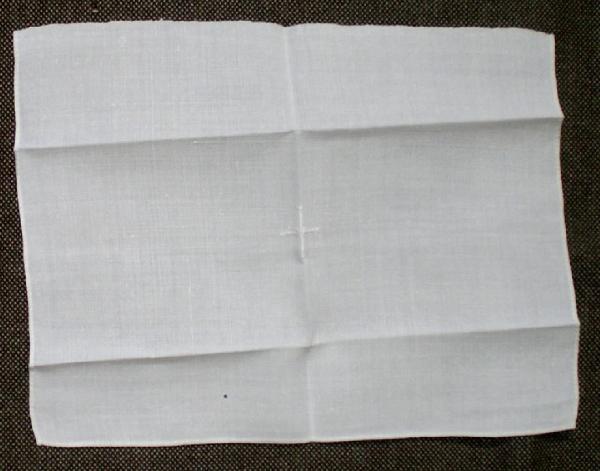 Punificatoio in lino bianco, con piccola croce a bracci uguali ricamata al centro. Orlo solo su tre lati.