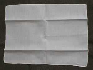 Punificatoio in cotone bianco con piccola croce ritrinciata a bracci uguali ricamata al centro.