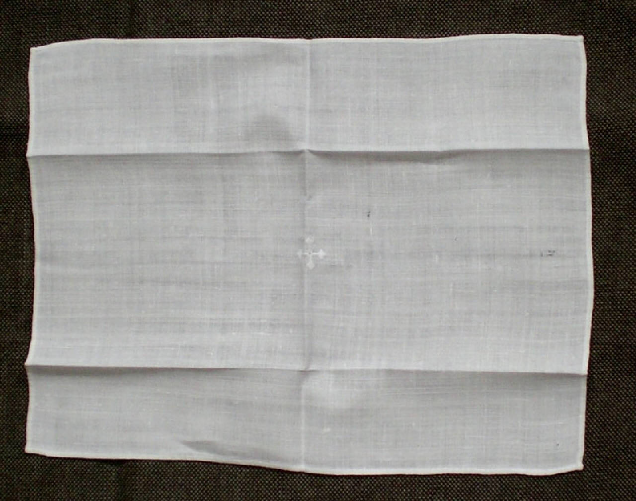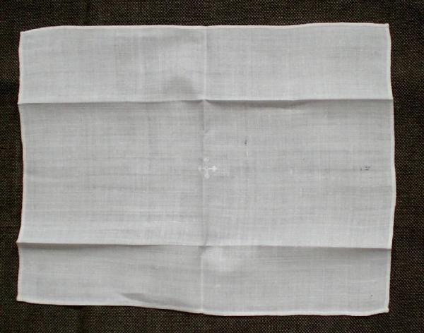 Punificatoio in lino bianco con piccola croce a bracci uguali con terminazioni trilobe ricamata al centro.