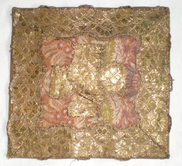 - NOTIZIE STORICO CRITICHE Proveniente dalla sacrestia della chiesa del Buon Consiglio, l'oratorio privato attiguo a Palazzo De Simoni.\nIl paramento è composto da: pianeta, manipolo, borsa, stola, velo (vedi invv. 2255-2256-2257-2258-2259)