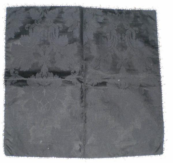 Velo in damasco nero. Passamaneria argentata applicata lungo il bordo.