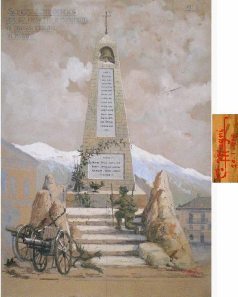 - NOTIZIE STORICO CRITICHE Si tratta di un bozzetto per un progetto di monumento ai caduti da realizzare in piazza del Kuerc a Bormio\nCfr. inv. n. 3437