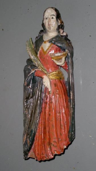 Si tratta di una santa martire, probabilmente una santa Lucia. Sicuramente parte di una macchina d'altare o di un'ancona.