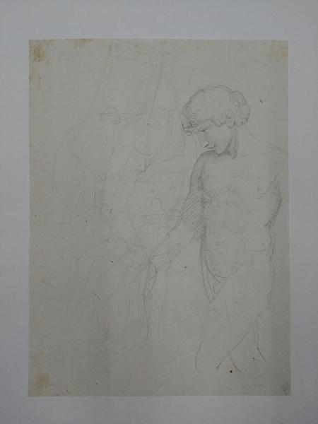 - NOTIZIE STORICO CRITICHE Il disegno raffigurante Amore in atto di estrarre la spada, è molto vicino per soggetto e stile alle opere eseguite da Appiani nell'ultimo decennio del XVIII secolo.\nAl disotto al disegno a penna è visibile lo schizzo a matita di una figura maschile.