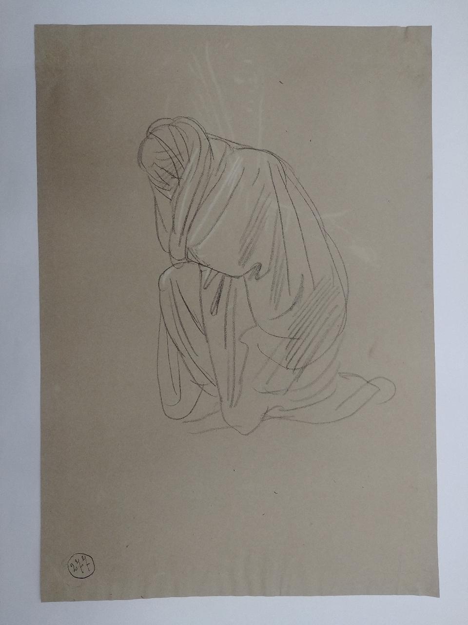figura femminile panneggiata inginocchiata. figura femminile panneggiata inginocchiata