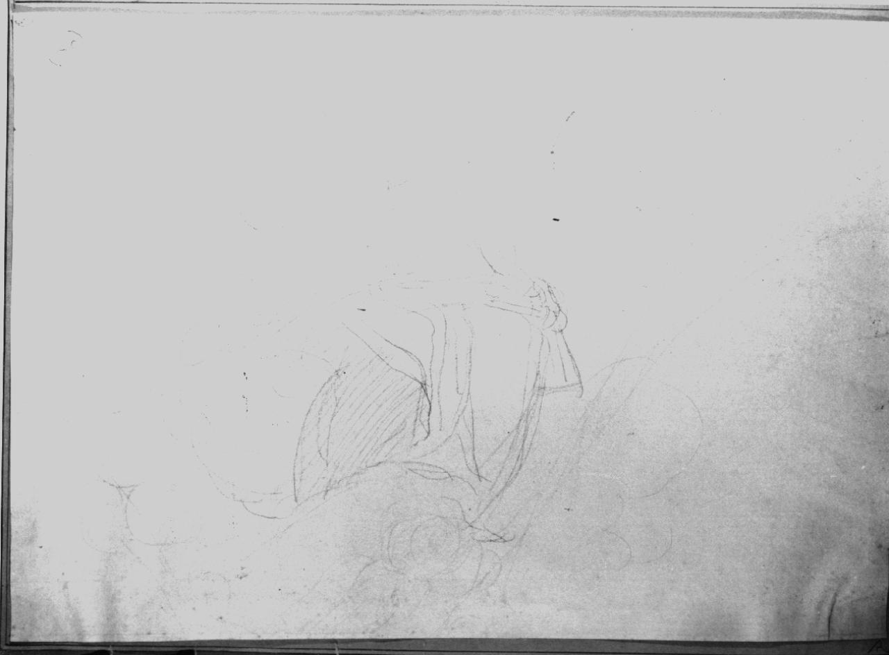 - NOTIZIE STORICO CRITICHE Il disegno è un veloce studio di San Giovanni Evangelista raffigurato nel pennacchio della cupola della chiesa di Santa Maria presso San Celso, affrescata da Appiani tra il 1792 e il 1795.\nAl verso uno schizzo per la figura di San Matteo (riflessa rispetto alla figura realizzata), due studi di composizione per gruppi di putti.\nIl disegno faceva parte della collezione privata di G. Vallardi che, intorno al 1820, ordinò in album ben 344 disegni di Appiani. L'album, di formato atlantico, pervenne all'Accademia di Brera nel 1875 per donazione di E. Cernuschi, allora residente a Parigi dove lo acquistò nel 1856-1860 (periodo in cui a Parigi si tennero aste di vendita di opere di provenienza Vallardi).
