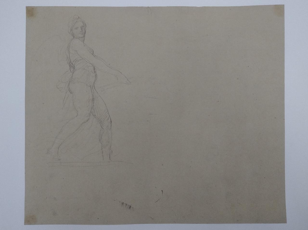 - NOTIZIE STORICO CRITICHE Il disegno è lo studio del braccio della Vittoria alata di destra in primo piano che regge il trono di Napoleone nell'affresco rappresentante "L'Apoteosi di Napoleone", eseguito da Appiani nel 1808. E' uno dei pochi affreschi rimasti a documentare l'attività del maestro per Palazzo Reale. Staccato, è conservato a Tremezzo presso Villa Carlotta.\n\nAl verso, studio della figura della Vittoria alata di sinistra in primo piano che regge il trono di Napoleone nell'affresco rappresentante "L'Apoteosi di Napoleone", eseguito da Appiani nel 1808.