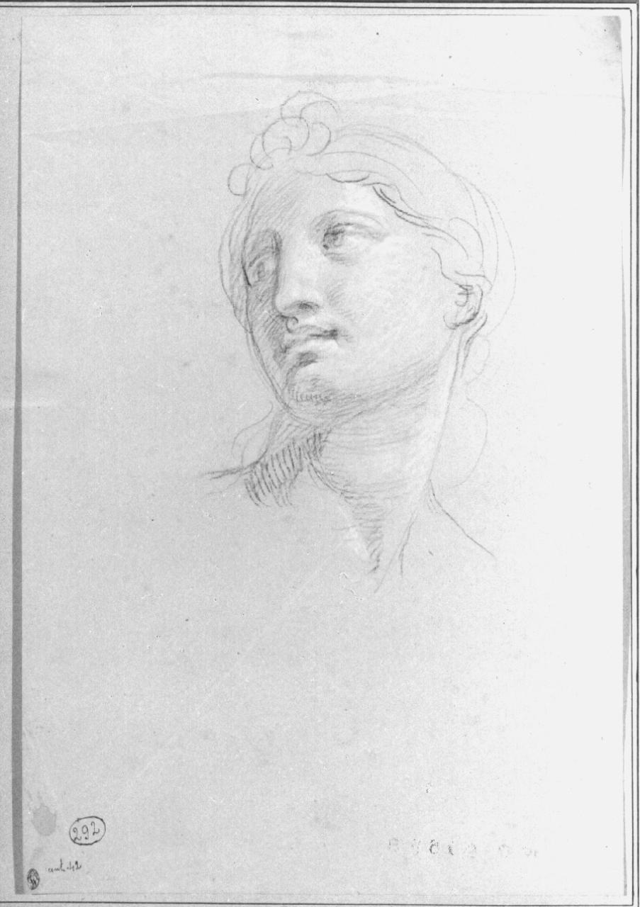 - NOTIZIE STORICO CRITICHE Il disegno è lo studio del volto della Musa Euterpe per l'affresco "Il Parnaso" eseguito da Appiani nel 1811 nella Villa Reale di Milano. Lo stile presenta le caratteristiche proprie di questa fase matura ed ultima della grafica di Appiani.\n\nAl recto: verificare.\nAl verso, studio di figura femminile per lo stesso soggetto presente al recto.