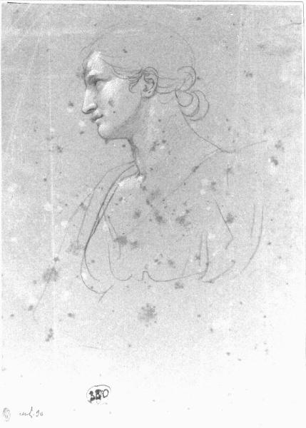 - NOTIZIE STORICO CRITICHE Il disegno è lo studio delle figura di Minerva per l'affresco rappresentante la "Contesa fra Apollo e Marsia". L'opera faceva parte di un ciclo dedicato alle storie di Apollo eseguito tra il 1795 e il 1796 nel palazzo del Conte Sannazzaro e ripreso nel 1800 per essere concluso. Nel 1814 la dimora, allora sede del Ministro delle Finanze Prina, venne assalita e gli affreschi danneggiati, per cui si decise di staccarli e portarli nella Pinacoteca di Brera (attualmente a Palazzo Morando).\n\nAl verso, gambe maschili e femminili probabilmente per le figure di Apollo e Dafne, parte di un ciclo dedicato alle storie di Apollo eseguito tra il 1795 e il 1796 nel palazzo del Conte Sannazzaro e ripreso nel 1800 per essere concluso. Nel 1814 la dimora, allora sede del Ministro delle Finanze Prina, venne assalita e gli affreschi danneggiati, per cui si decise di staccarli e portarli nella Pinacoteca di Brera (attualmente in deposito).
