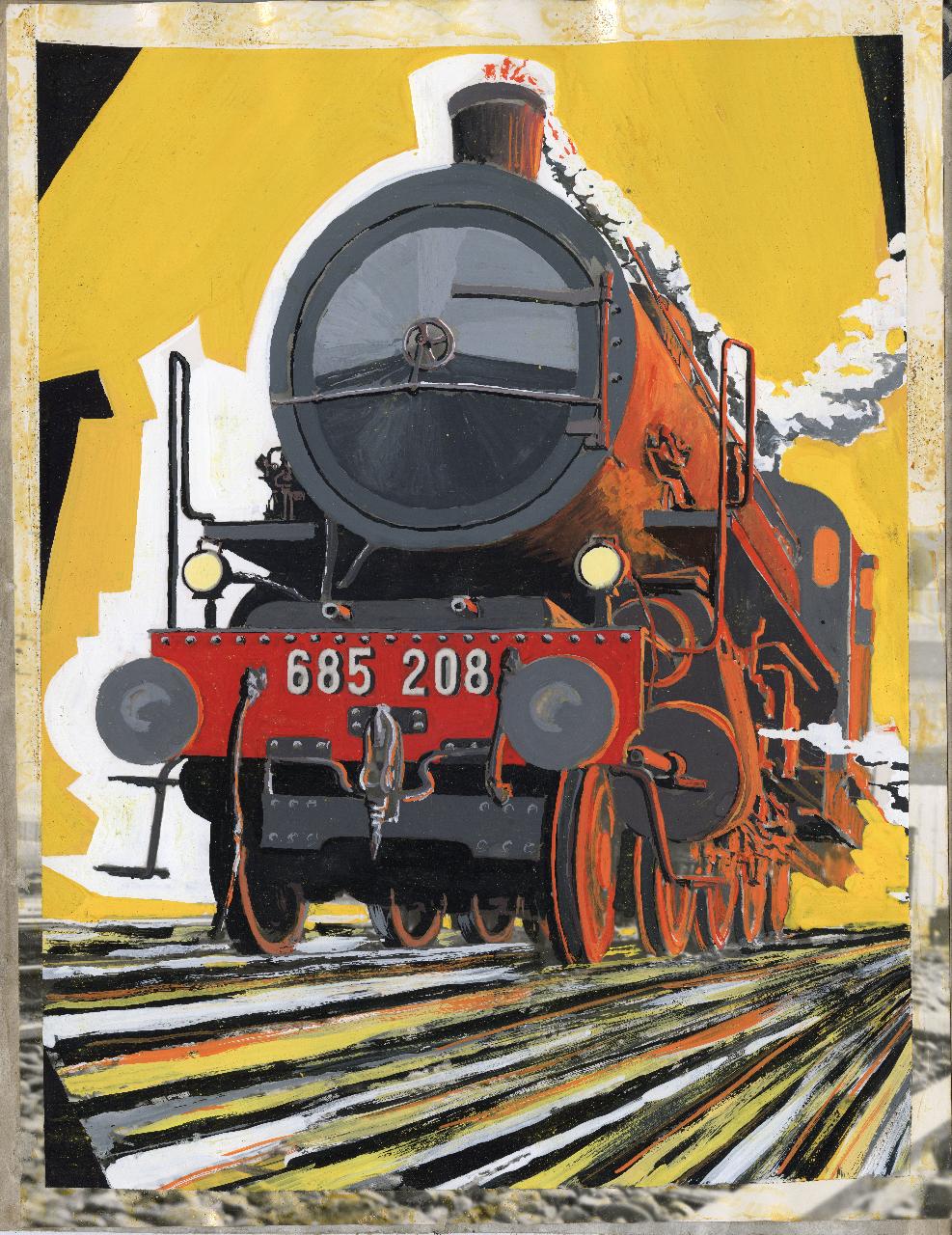 Bozzetto di locomotiva a vapore per campagna pubblicitaria della Società Breda. treno