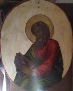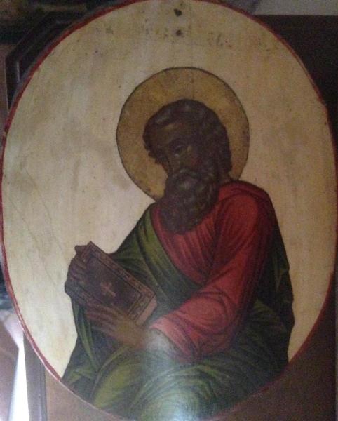 Icona russa raffigurante l'evangelista San Matteo mentre tiene tra le mani il Vangelo chiuso.