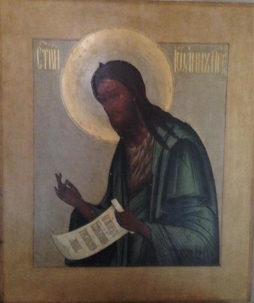 Icona russa raffigurante San Giovanni, rivolto a sinistra verso Cristo, al centro della Deesis, mentre intercede per i peccatori porgendo la sua supplica.