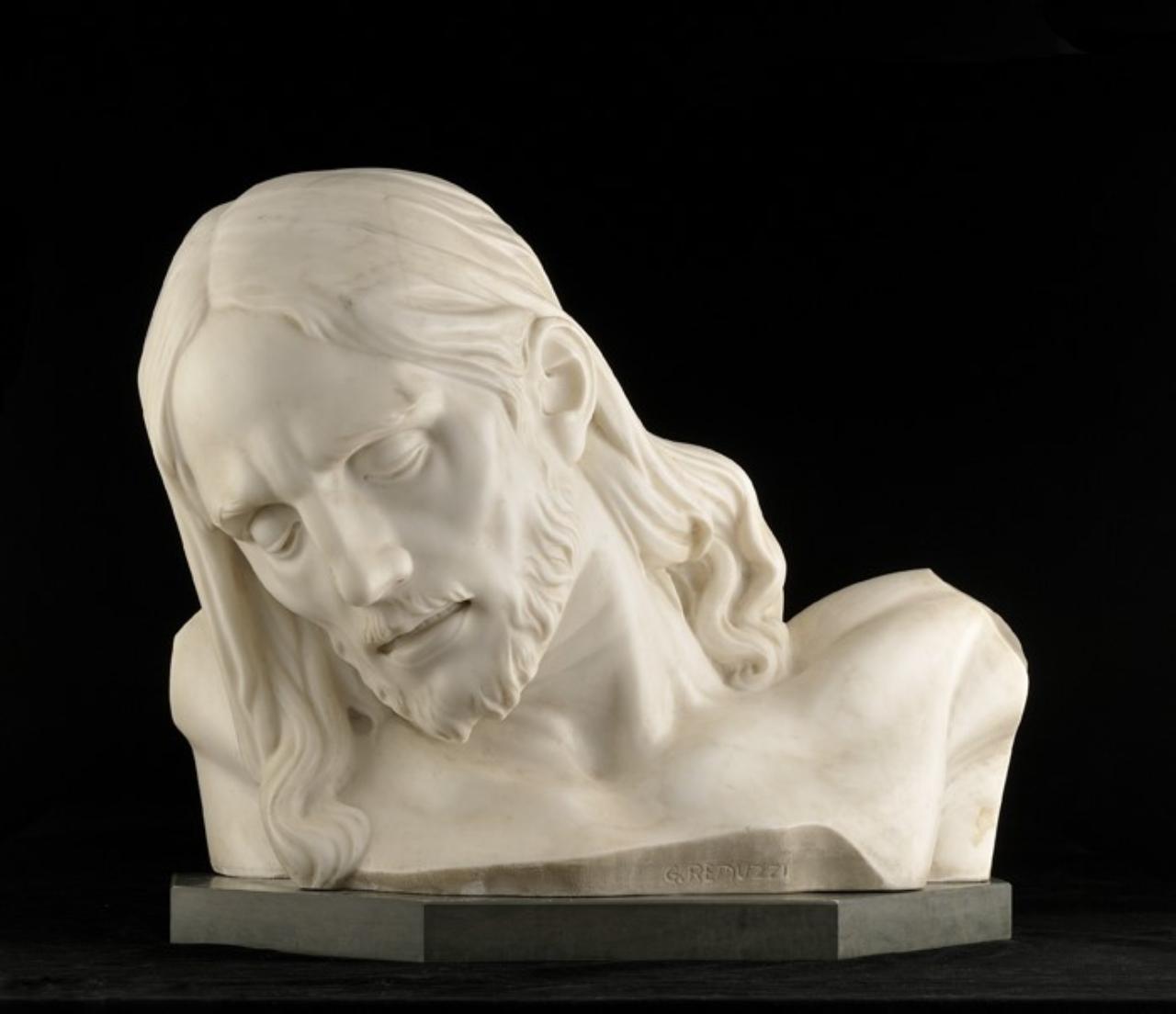 Il busto realizzato davanti a un modello reale e sapientemente modellato, si presenta con la testa di Cristo piegata verso destra e con il volto privo delle ferite della Passione. L’intensità plastica della scultura esprime la nobile e obbedienza del Cristo alla volontà del Padre.\nL’opera si qualifica per la perfezione formale e anatomica quale effetto dello studio e della ricerca delle sculture classiche di fine settecento.