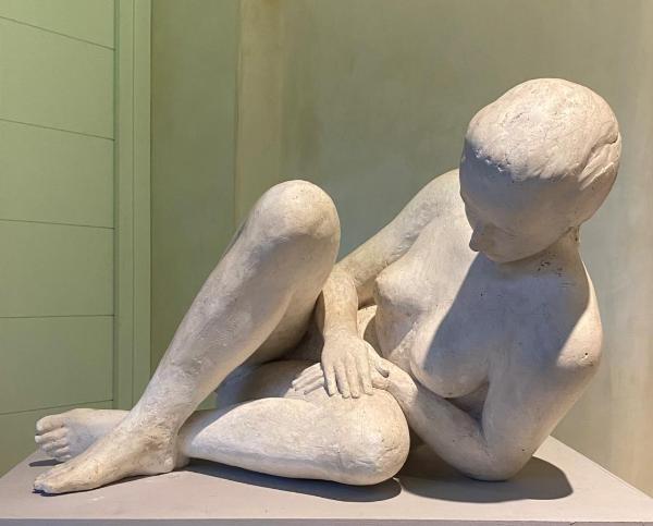 A partire dal 1936 ("Tre studi per l'uovo") Locati evidenzia l'aspirazione profonda che sfocia nella ricerca della "perfezione-conclusa" della forma a uovo. Questo studio in gesso infatti presenta una giovane donna sdraiata a forma ovale come la realizzazione raccolta nella perfezione della forma chiusa. \nModello originale in gesso predisposto per la riproduzione in pietra.