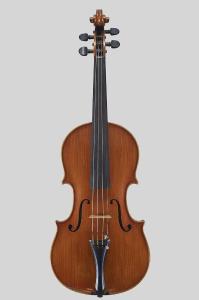 La viola presenta un fondo costituito da due pezzi d'acero giuntati al centro. La verniciatura si contraddistingue per un leggero sottofondo seguito da una vernice con tenui sfumature di colore. Il ponticello non è originale.