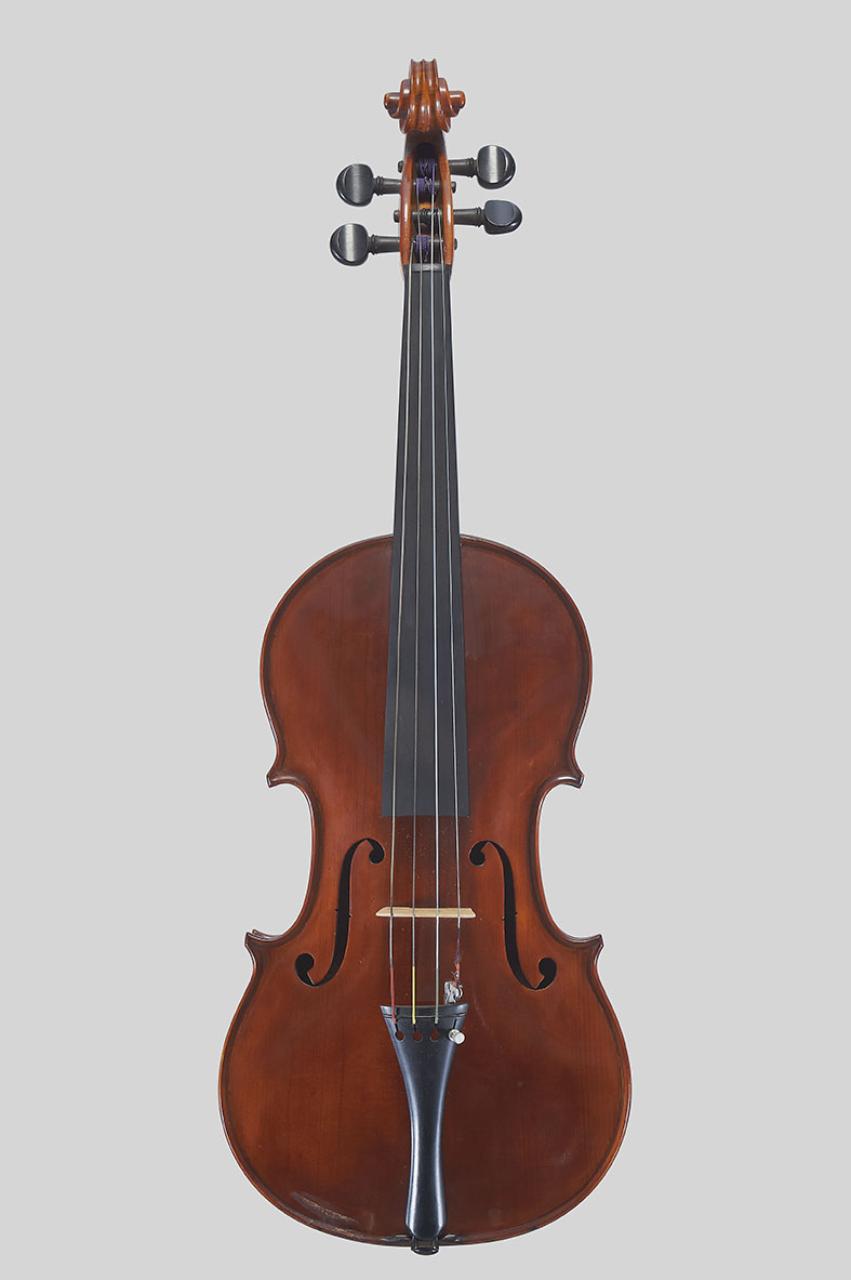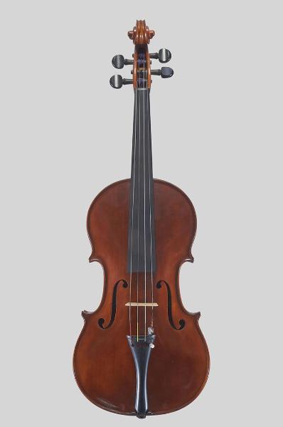 La viola di piccolo formato presenta una tavola armonica costituita dall'unione di due pezzi. Si caratterizza per bombature poco armoniose, prive di un buon raccordo con il bordo; la sguscia profonda termina con uno spigolo accentuato sul bordo, caratteristica molto evidente nelle punte dello strumento. I fori armonici appaiono sovradimensionati. La testa si caratterizza per l'occhio e lo smusso molto arrotondato; la cassetta dei piroli- molto allungata- termina con un taglio curvo. Il ponticello non è originale, è stato sostituito.