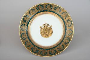 - NOTIZIE STORICO CRITICHE Il piatto proviene dalle collezione del Duca d'Aosta è stato donato a Villa Carlotta da Giuseppe Bianchini. Questo piatto, che presenta lo stemma del Regno d'Italia napoleonico, è stato prodotto dalla Manufacture nationale de Sèvres, una delle più celebri e antiche manifatture di porcellana in Europa.