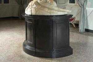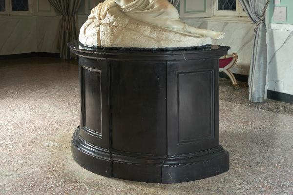 Basamento cavo semicircolare realizzato in marmo nero di Varenna. Specchiature, base e piano modanati.
