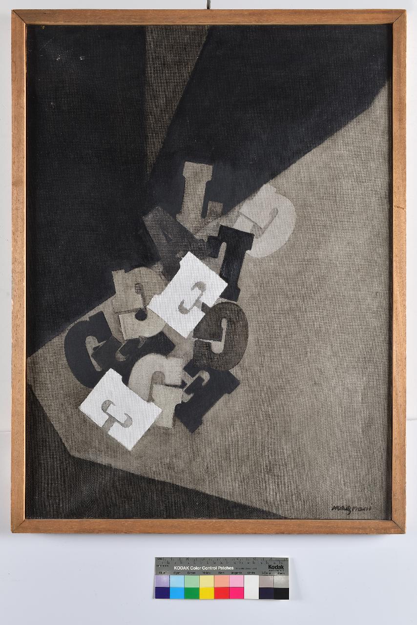 - NOTIZIE STORICO CRITICHE L'opera porta la data del 1973 e il nome del suo autore si ritrova nel catalogo della mostra-vendita organizzata da ANPI nel 1974. Dall'8 al 30 giugno 1974 di quell'anno, venne infatti aperta, nella Sala della Balla al Castello Sforzesco di Milano, una grande esposizione nazionale che riuniva un imponente numero di opere d'arte, divise in una sezione storica e in una parte riservata ad artisti della piena contemporaneità. Lo scopo di questa esposizione, che si intitolava "Mostra vendita di opere d'arte a favore della Resistenza internazionale", è ben specificato nei documenti che la testimoniano, conservati presso l'archivio della Fondazione ISEC di Sesto San Giovanni. Per la parte di arte contemporanea le opere erano donate dai loro autori ad ANPI per essere vendute: il ricavato sarebbe stato impiegato a sostegno della "Resistenza internazionale e delle lotte contro ogni forma di fascismo risorgente". \nSebbene il nome dell'artista non compaia nei documenti concernenti l'esposizione conservati presso ISEC di Sesto San Giovanni, nel catalogo della mostra l'autore della tela è invece precisamente segnato.\nEsiste peraltro un cartellino, ormai staccato dal quadro e mancante della parte inferiore ma chiaramente connesso con l'opera e riferibile all'esposizione del 1974, che conferma in modo assoluto la presenza della tela all'esposizione; in esso si legge, scritto a stampa e in corsivo: A.N.P.I. / ASSOCIAZIONE NAZIONALE PARTIGIANI D'ITALIA / COMITATO NAZIONALE / MOSTRA ARTI FIGURATIVE / 27/3/1974 N. / Maestro Vittorio Magnani / Via Corso S. Gottardo 3 / Tel. Città Milano / Titolo dell'opera La legge / Misura 73 x 65/ Anno di produzione 1973/ 600.000.\nSi ritiene pertanto che il dipinto provenga da quella particolare rassegna, essendo rimasto nella proprietà di ANPI per donazione dell'autore.\nVittorio Magnani nasce a Noceto (PR) nel 1912. Studia all'Accademia di Brera di Milano, sotto la guida di Aldo Carpi. Partecipa alla lotta partigiana, realizzando anche disegni sul tema della Resistenza, oggi conservati nella raccolta di Mario De Micheli; nel dopoguerra di trasferisce a Milano, dove sviluppa la sua carriera artistica, inizialmente ispirata al clima dell'arte informale e quindi maturata in una dimensione di linguaggio astratto dalla raffinata comunicazione mentale. La sua pittura è protagonista di varie esposizioni personali, in Italia e in Svizzera, mentre è presente alla Quadriennale di Roma nel 1965. L'artista è morto a Milano nel 1994.\n\n
