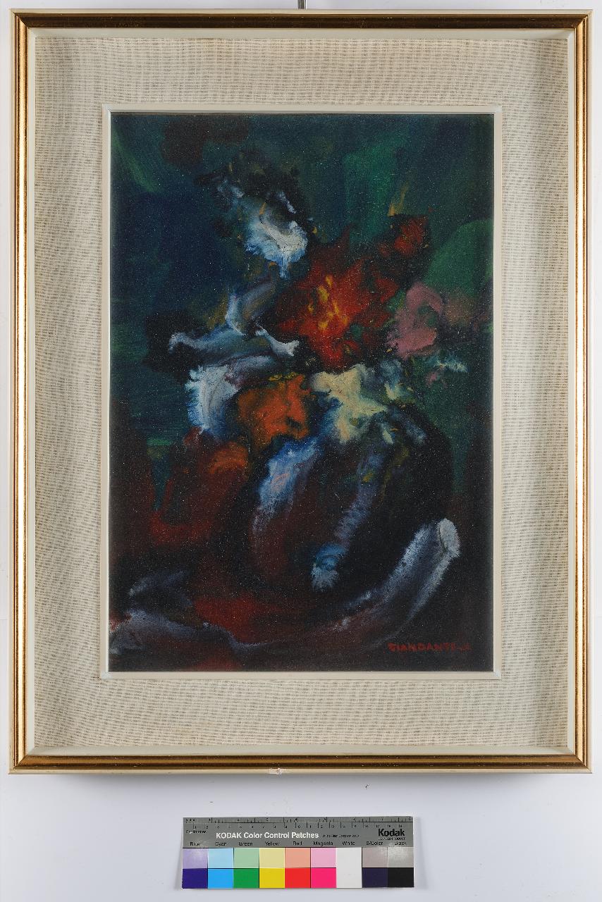 - NOTIZIE STORICO CRITICHE Giandante X (Dante Pescò), pittore, scultore e architetto, nasce a Milano nel 1899. Da fiero e instancabile antifascista, sceglie, nel 1933, l'esilio in Francia; nel 1936 passa in Spagna, dove combatte in difesa del legittimo governo democratico, dedicandosi particolarmente alla realizzazione di immagini per la stampa di propaganda. Nel 1939, con i reduci antifranchisti, è rinchiuso in Francia nei campi di concentramento di Saint Cyprien, Gurs e Vernet, dove non smette la sua attività artistica realizzando una notevole produzione di disegni. Rientrato in Italia partecipa alla lotta partigiana e con la Liberazione fa ritorno a Milano, dove vive dedicando tutto se stesso all'arte, producendo, fino alla morte avvenuta nel 1984, un numero straordinario di opere, tra le quali quella di proprietà ANPI.