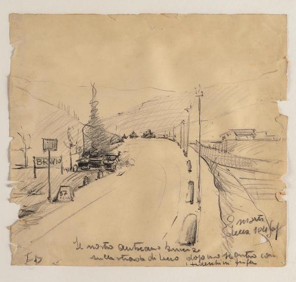 - NOTIZIE STORICO CRITICHE Il disegno è incorniciato insieme a un altro dello stesso autore con tema simile ("Sul ponte di Brivio ore 17,35 arrivano gli americani!") e in basso sul passe-partout è presente un'etichetta che riporta FRANCO D'ACQUATI "I° man. Mostra del Risorgimento": questa nota potrebbe indicare che l'opera sia uno degli studi realizzati da Dacquati per il manifesto della "Mostra del 1° e 2° Risorgimento", tenuta a Milano nel 1946, oppure che abbia partecipato alla selezione espositiva della rassegna: sappiamo infatti che Dacquati lavorò per questa manifestazione, come testimoniato da un bozzetto per il manifesto conservato in Casa della Memoria; non si tratta comunque di un'etichetta collocata dall'artista, considerata la scrittura errata del nome (D'Acquati e non Dacquati). Quest'opera, insieme a quella incorniciata nello stesso quadro, appare strettamente collegata ad altri due disegni di Dacquati anch'essi incorniciati insieme e con etichetta simile ("Brivio 27.4.45 ore 16 la colonna Farinacci in vista" e "Dopo l'imboscata a Rovagnate"), sempre conservati in Casa della Memoria. \nLo stato di conservazione del disegno, come degli altri tre a esso collegati, fa immaginare una sua sofferta sopravvivenza in circostanze difficili, forse proprio quelle del 1945, quando potrebbe essere stato eseguito divenendo una significativa e preziosa testimonianza storica.\nUn altro dei cartellini visibili sul retro, quello dentellato coperto da un'etichetta successiva, appare perfettamente accomunabile con i cartellini, del tutto simili ma con diversa numerazione, di altre opere della raccolta ANPI. Questo rilievo suggerisce che l'opera, insieme alle altre così caratterizzate, potesse aver fatto parte o di un gruppo di lavori archiviati precedentemente con conseguente numerazione o della selezione espositiva di una ulteriore mostra. Su di essa è per ora possibile solo dire che, considerati i contenuti delle opere con questa etichetta, non dovrebbe essersi trattato di una mostra-vendita ma di una esposizione dedicata specificamente al tema della Resistenza; per quanto concerne la data di questa ipotetica rassegna, è da fissare a dopo il 1960, per la data della tela di Salvatore Blasco con identico cartellino.\nFranco Dacquati nasce a Milano nel 1910, dove studia e si diploma all'Accademia di Brera; tra il 1942 e il 1944 compie reportage d'arte sul fronte di guerra. Tra 1946 e 1952 cura una rubrica sulla rivista "Corriere degli artisti". Il suo percorso espressivo è presentato in diverse mostre personali, mentre partecipa a importanti collettive, come la Biennale di Milano, dove è presente nel 1950 e nel 1958. Ha svolto attività di insegnamento e alcune delle sue opere sono conservate al Museo del Risorgimento di Milano. La sua arte si sviluppa in un ambito di figurazione nel quale ricorrente è il tema della figura, particolarmente femminile: l'opera di proprietà ANPI appartiene a una cospicua serie di lavori dell'artista conservati in Casa della Memoria e dedicati alle tematiche della Resistenza. L'artista è morto a Milano nel 1988. \n\n
