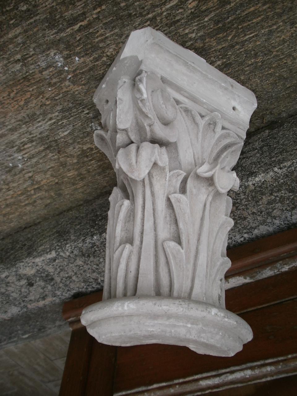 Modello di semicapitello di stile corinzio, in gesso, con foglie d'acanto e volute.