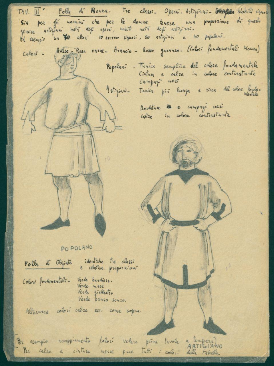 Figurini per costume di scena dello spettacolo "Il sacro mimo di Gerardo dei Tintori". costumi teatrali per popolano e artigiano