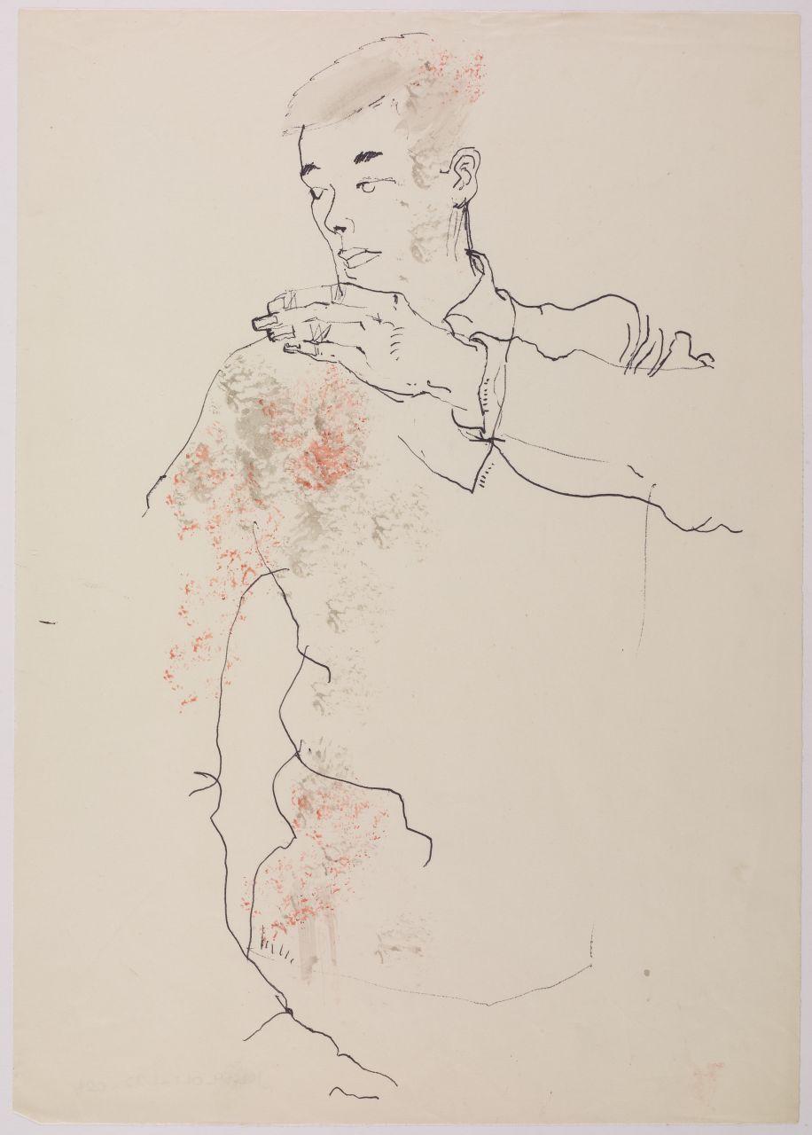 Bozzetto per l'illustrazione del pieghevole pubblicitario "Lettera allo studente" della società Olivetti. uomo a mezza figura