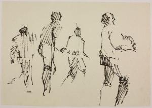 Disegno per mostra allestita alla Libreria Salto di Milano, 1961. figure umane in movimento