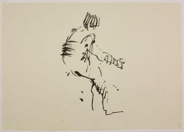 - NOTIZIE STORICO CRITICHE "Serie di immagini rapide, di strutture elastiche, in cui il peso diverso dei neri, e la composizione stabiliscono di volta in volta un movimentato equilibrio" [...] "Questi segni ci rivelano una trama di significati. File di elmetti, mani e bastoni alzati, braccia in atto di scagliare. Non simboli, ma qualcosa come la forma culminante di una situazione umana" [...] "In questi disegni qualcosa sta accadendo. Così non offrono un dato alla memoria, ma un oggetto all'emozione". Citazioni tratte dalla presentazione di Emilio Tadini alla mostra di disegni di Giancarlo Iliprandi alla Libreria Salto di Milano, 1961. L'ampio ciclo di disegni è stimolato dalla strage di Reggio Emilia del 7 luglio 1960, quando durante una manifestazione sindacale le violenze delle forze dell'ordine portarono alla morte di cinque operai. L'evento e l'ampio numero dei poliziotti impiegati, più di trecento, portarono Iliprandi a interrogarsi sulla violenza in una serie di disegni che sembrano seguire la radiocronaca dell'evento, con "movimenti di macchina" che si avvicinano e allontanano di continuo dalle scene del tumulto, focalizzandosi sulle masse, vuoi dei militari vuoi dei manifestanti, così come sui corpi a terra dei feriti e dei morti. Il disegno a china su carta di riso evidenzia l'urgenza espressiva e le possibilità drammatiche, evidenti soprattutto quando la scena è ridotta a poche chiazze d'inchiostro, oppure agli ultimi movimenti convulsi di un corpo disteso a terra. Scene di cronaca che evocano al contempo momenti universali e fuori dal tempo riferendosi più in generale alle lotte e alle violenze di tutti i tempi. L'ampio ciclo di disegni è realizzato per una mostra alla Libreria Salto di Milano. Da questa serie di opere Iliprandi ricava anche una più ampia riflessione sul rapporto tra grafica e disegno creando una sequenza d'immagini introdotta da un breve testo. Un materiale che sembrerebbe costituire una sezione speciale della stessa mostra: "sezione inutile per quanti sono esperti di codeste cose, militano in questo campo, ma utile forse per i profani, che sono sempre la maggioranza e che sanno così poco del nostro lavoro di ricerca". Lo stesso testo con una selezione d'immagini è poi pubblicato sulla rivista "Serigrafia" nel maggio-giugno 1963 con il titolo "Incontro fra la grafica e il disegno". Dopo un decennio di esperienze professionali dove la pittura e il disegno si intersecano con la grafica e la fotografia, Iliprandi crede di dover mettere a punto qualche considerazione, probabilmente stimolato anche nel vedere alla propria mostra una certa incapacità di leggere criticamente il disegno e constatare una sempre maggiore richiesta di specializzazione professionale.