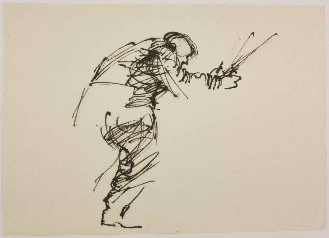Disegno per mostra allestita alla Libreria Salto di Milano, 1961. uomo armato