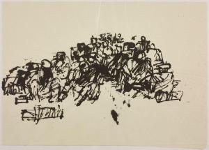 Disegno per mostra allestita alla Libreria Salto di Milano, 1961. militari in combattimento