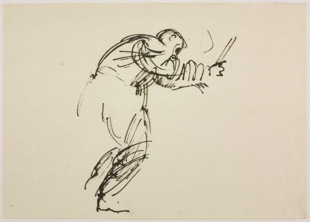 Disegno per mostra allestita alla Libreria Salto di Milano, 1961. uomo armato in movimento