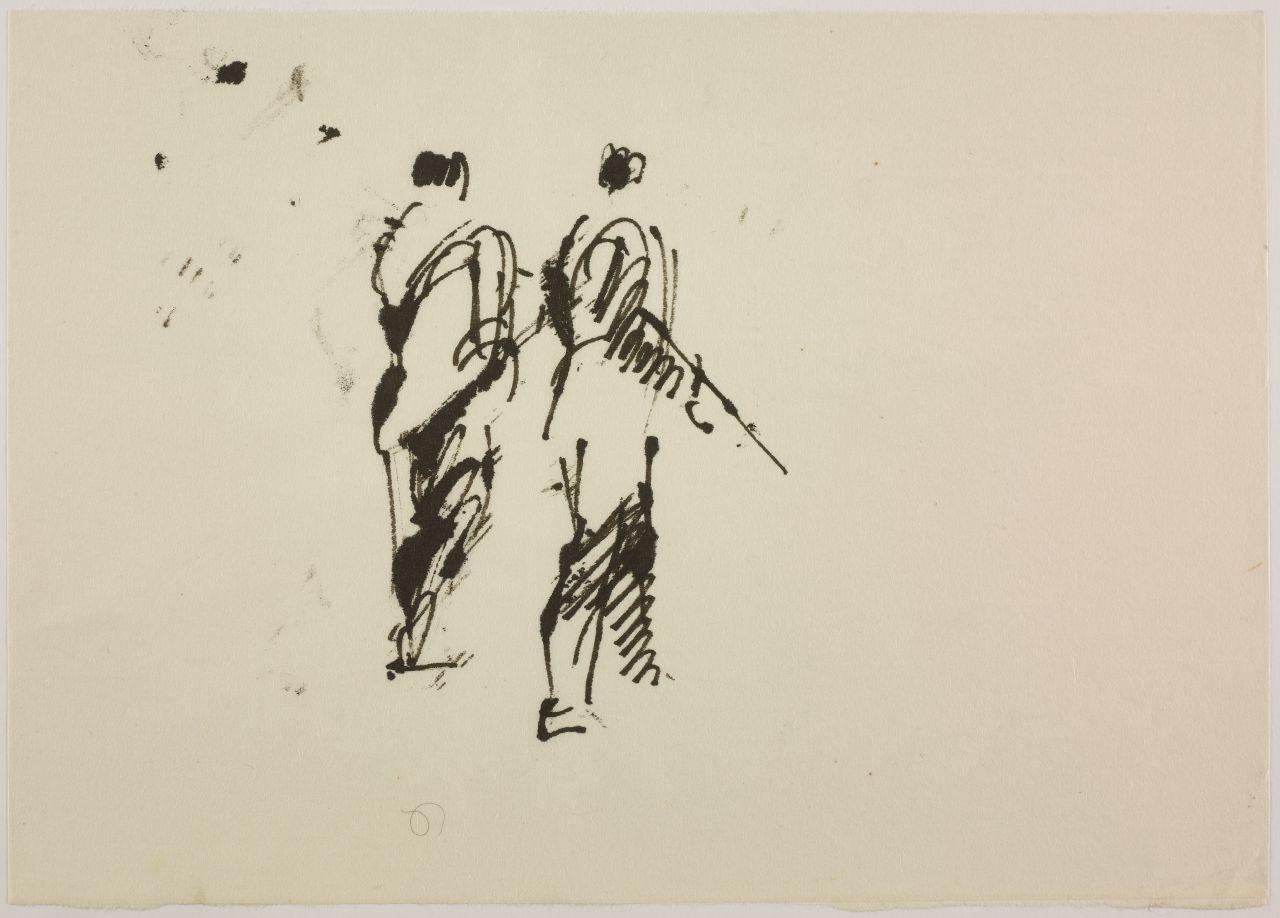 Disegno per mostra allestita alla Libreria Salto di Milano, 1961. uomini armati
