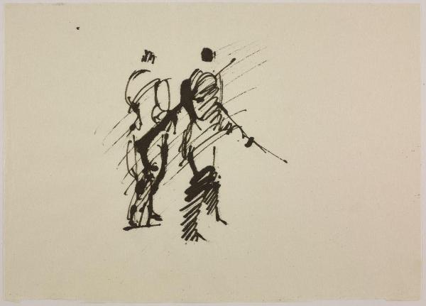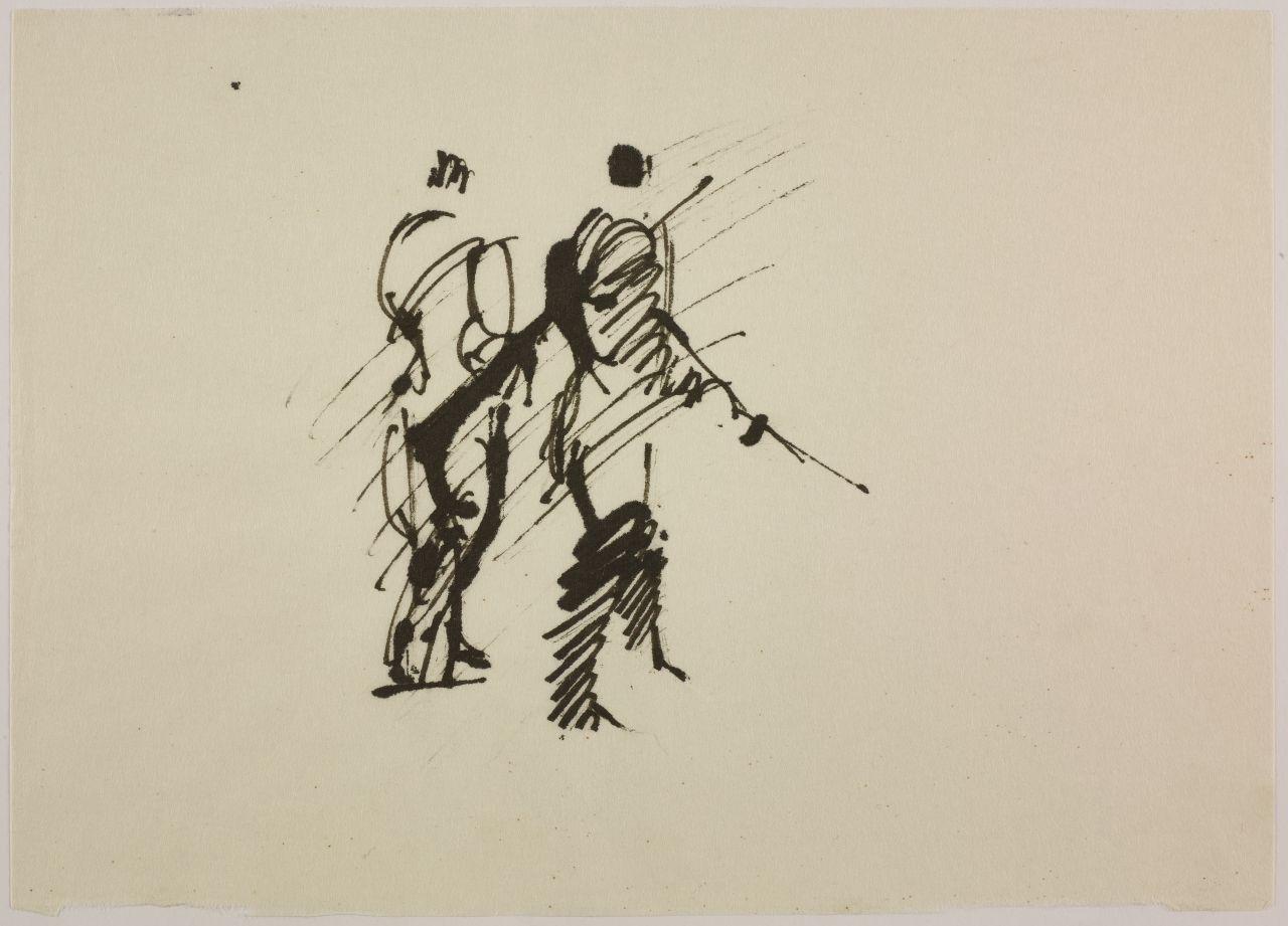 Disegno per mostra allestita alla Libreria Salto di Milano, 1961. uomini armati
