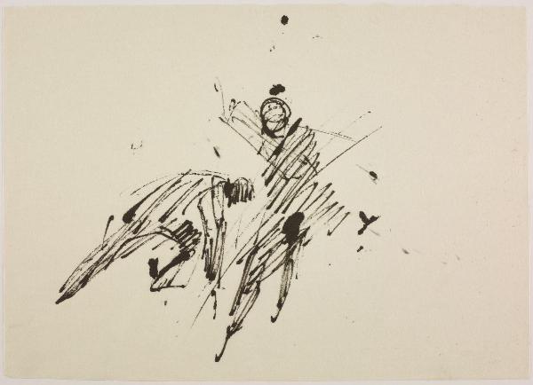- NOTIZIE STORICO CRITICHE "Serie di immagini rapide, di strutture elastiche, in cui il peso diverso dei neri, e la composizione stabiliscono di volta in volta un movimentato equilibrio" [...] "Questi segni ci rivelano una trama di significati. File di elmetti, mani e bastoni alzati, braccia in atto di scagliare. Non simboli, ma qualcosa come la forma culminante di una situazione umana" [...] "In questi disegni qualcosa sta accadendo. Così non offrono un dato alla memoria, ma un oggetto all'emozione". Citazioni tratte dalla presentazione di Emilio Tadini alla mostra di disegni di Giancarlo Iliprandi alla Libreria Salto di Milano, 1961. L'ampio ciclo di disegni è stimolato dalla strage di Reggio Emilia del 7 luglio 1960, quando durante una manifestazione sindacale le violenze delle forze dell'ordine portarono alla morte di cinque operai. L'evento e l'ampio numero dei poliziotti impiegati, più di trecento, portarono Iliprandi a interrogarsi sulla violenza in una serie di disegni che sembrano seguire la radiocronaca dell'evento, con "movimenti di macchina" che si avvicinano e allontanano di continuo dalle scene del tumulto, focalizzandosi sulle masse, vuoi dei militari vuoi dei manifestanti, così come sui corpi a terra dei feriti e dei morti. Il disegno a china su carta di riso evidenzia l'urgenza espressiva e le possibilità drammatiche, evidenti soprattutto quando la scena è ridotta a poche chiazze d'inchiostro, oppure agli ultimi movimenti convulsi di un corpo disteso a terra. Scene di cronaca che evocano al contempo momenti universali e fuori dal tempo riferendosi più in generale alle lotte e alle violenze di tutti i tempi. L'ampio ciclo di disegni è realizzato per una mostra alla Libreria Salto di Milano. Da questa serie di opere Iliprandi ricava anche una più ampia riflessione sul rapporto tra grafica e disegno creando una sequenza d'immagini introdotta da un breve testo. Un materiale che sembrerebbe costituire una sezione speciale della stessa mostra: "sezione inutile per quanti sono esperti di codeste cose, militano in questo campo, ma utile forse per i profani, che sono sempre la maggioranza e che sanno così poco del nostro lavoro di ricerca". Lo stesso testo con una selezione d'immagini è poi pubblicato sulla rivista "Serigrafia" nel maggio-giugno 1963 con il titolo "Incontro fra la grafica e il disegno". Dopo un decennio di esperienze professionali dove la pittura e il disegno si intersecano con la grafica e la fotografia, Iliprandi crede di dover mettere a punto qualche considerazione, probabilmente stimolato anche nel vedere alla propria mostra una certa incapacità di leggere criticamente il disegno e constatare una sempre maggiore richiesta di specializzazione professionale.