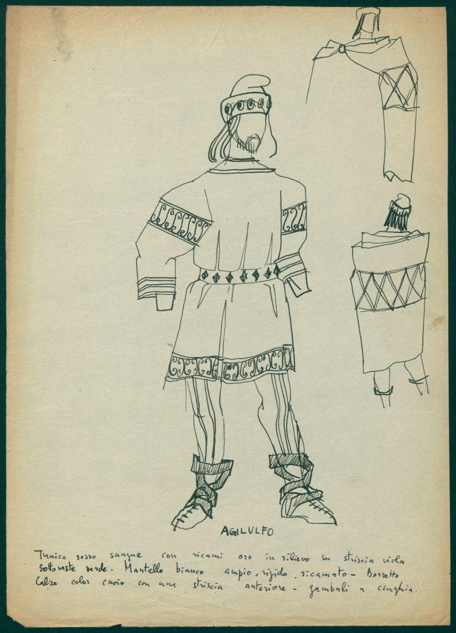 Figurini per costume di scena dello spettacolo" La leggenda di Flavia Teodelinda". costume per Agilulfo