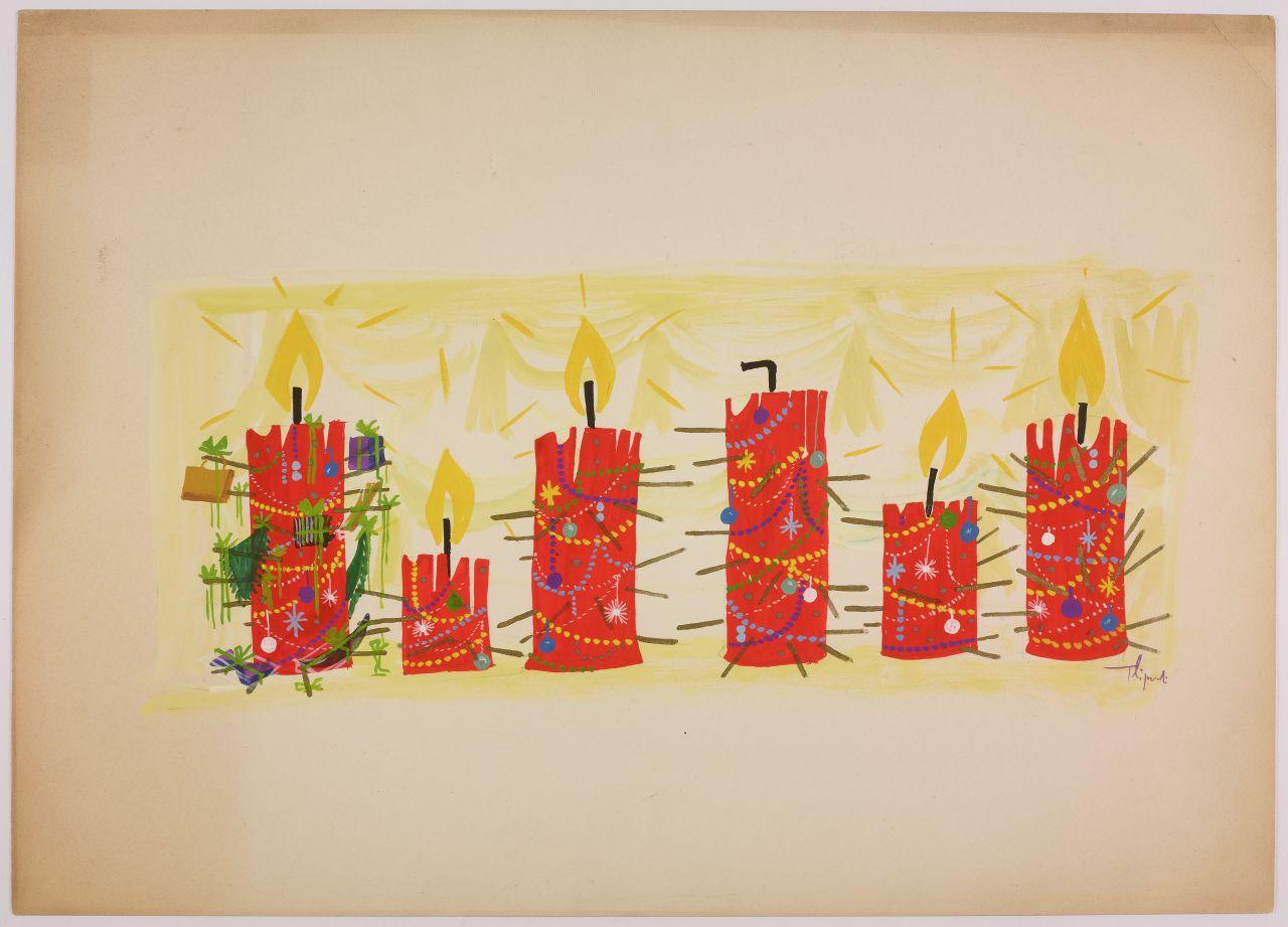 Bozzetto per l'allestimento di Natale ai grandi magazzini la Rinascente. candele decorate