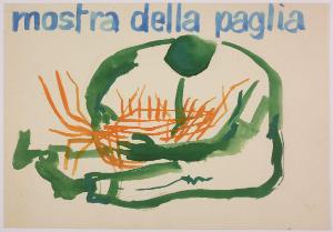 Bozzetto per invito italia espone ai grandi magazzini la Rinascente. uomo intreccia della paglia