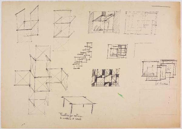 Disegno eseguito con inchiostro a penna e grafite su cartoncino con iscrizioni manoscritte.