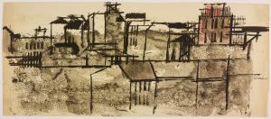 - NOTIZIE STORICO CRITICHE Nel gennaio 1958 Giancarlo Iliprandi espone i suoi dipinti della serie Case e cantieri alla Galleria dell'Ariete a Milano per cui viene pubblicato il ventinovesimo catalogo della Galleria con testo dell'amico e collega pittore Emilio Tadini. La pittura di Iliprandi registrava la rinascita e l'espansione urbanistica della Milano dell'immediato secondo dopoguerra, che Iliprandi segue con interesse, soprattutto riguardo la zona dove abita (via Ampere 55) allora interessata dal cantiere della nuova Facoltà di Architettura così come del palazzo di Gio Ponti in via Vallazze 63 dove il giovane acquista un appartamento e si trasferisce nel dicembre 1957.