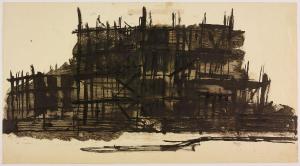 - NOTIZIE STORICO CRITICHE Nel gennaio 1958 Giancarlo Iliprandi espone i suoi dipinti della serie Case e cantieri alla Galleria dell'Ariete a Milano per cui viene pubblicato il ventinovesimo catalogo della Galleria con testo dell'amico e collega pittore Emilio Tadini. La pittura di Iliprandi registrava la rinascita e l'espansione urbanistica della Milano dell'immediato secondo dopoguerra, che Iliprandi segue con interesse, soprattutto riguardo la zona dove abita (via Ampere 55) allora interessata dal cantiere della nuova Facoltà di Architettura così come del palazzo di Gio Ponti in via Vallazze 63 dove il giovane acquista un appartamento e si trasferisce nel dicembre 1957.