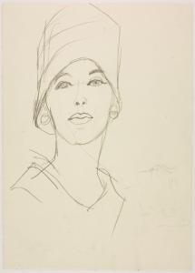 Bozzetto per il reparto Donna Moda femminile dei grandi magazzini la Rinascente. volto di donna con cloche